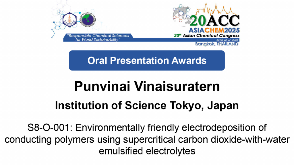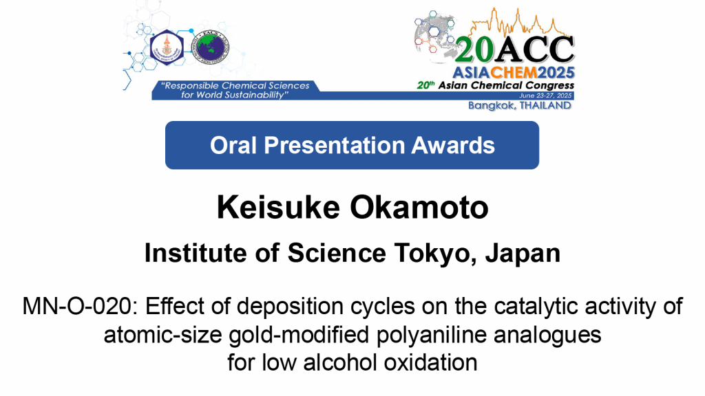 Two students from our laboratory received Oral Presentation Awards at the 20th Asia Chem2025 international conference held in Bangkok, Thailand.