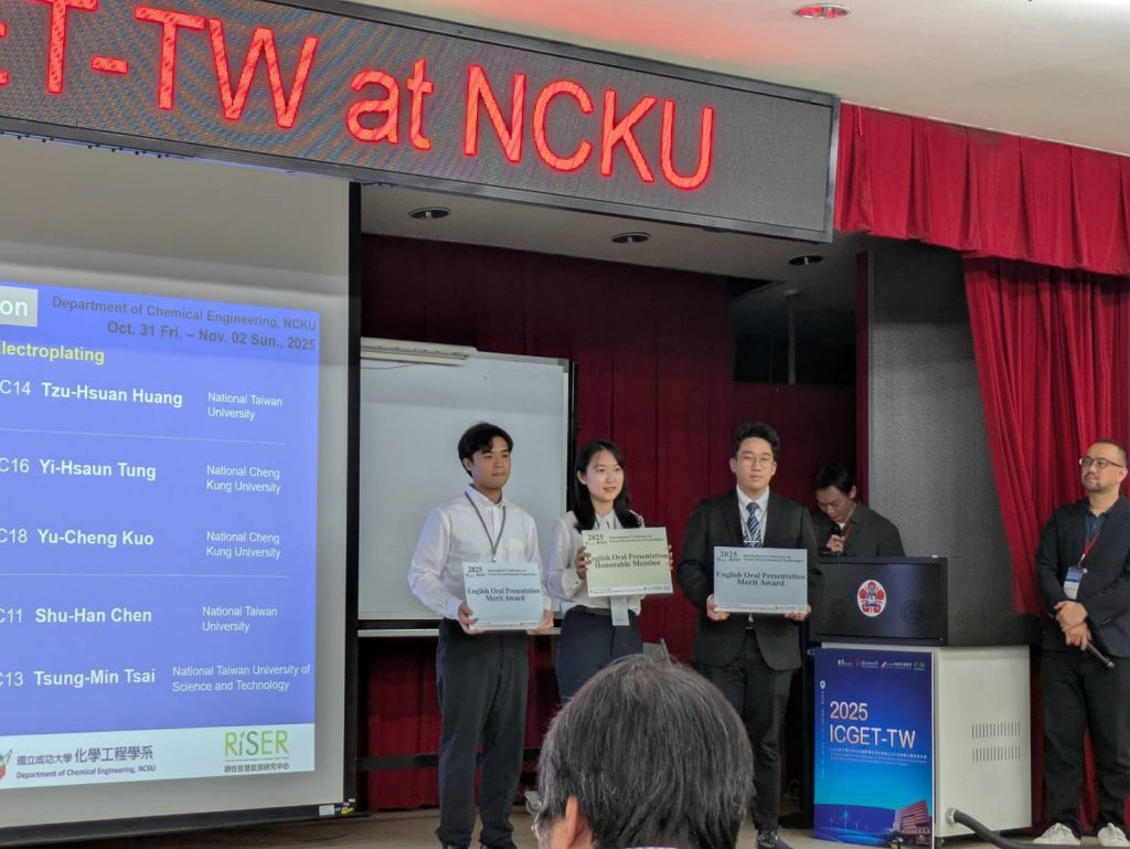 Three students from our laboratory received awards at ICGET-TW2025, held at National Cheng Kung University in Tainan, Taiwan.